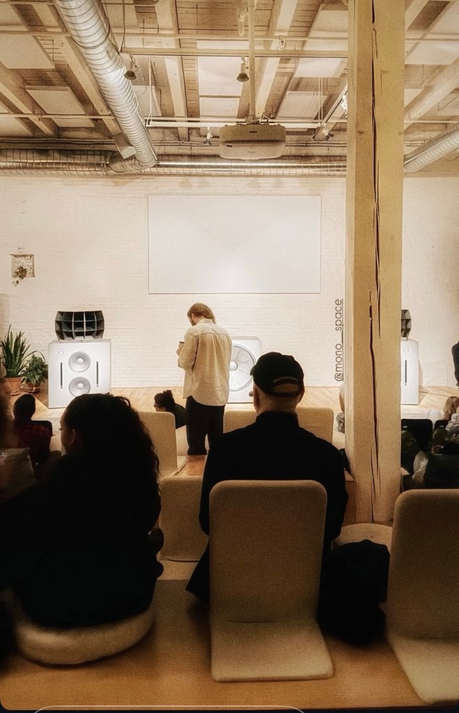 Everything now is a “listening experience”. In a big space with uncomfortable sort of pillow seating.
